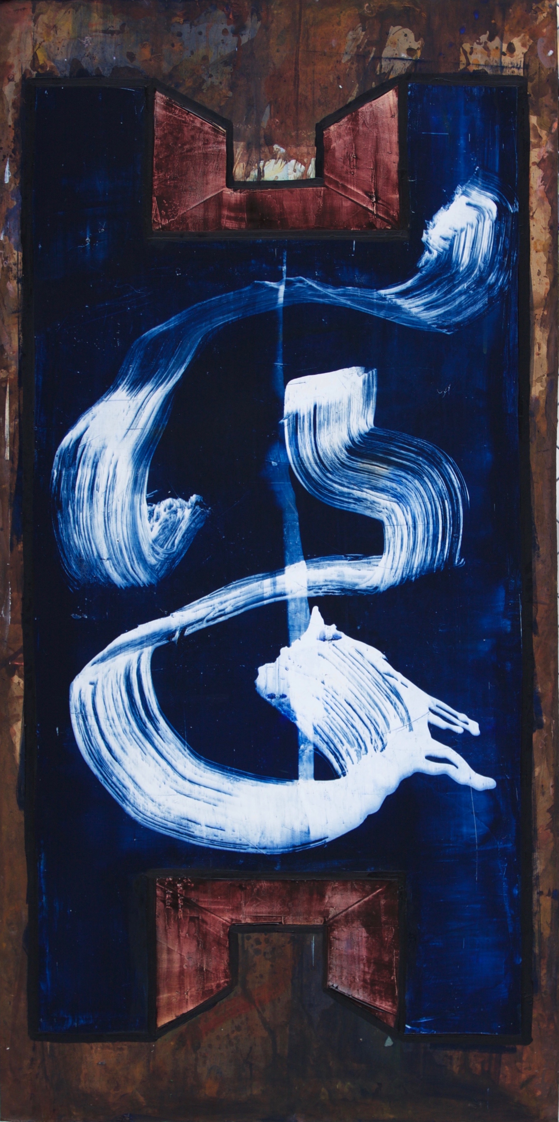 Deep Blue Courting, 125×62 cm, oil on MDF board, 2018